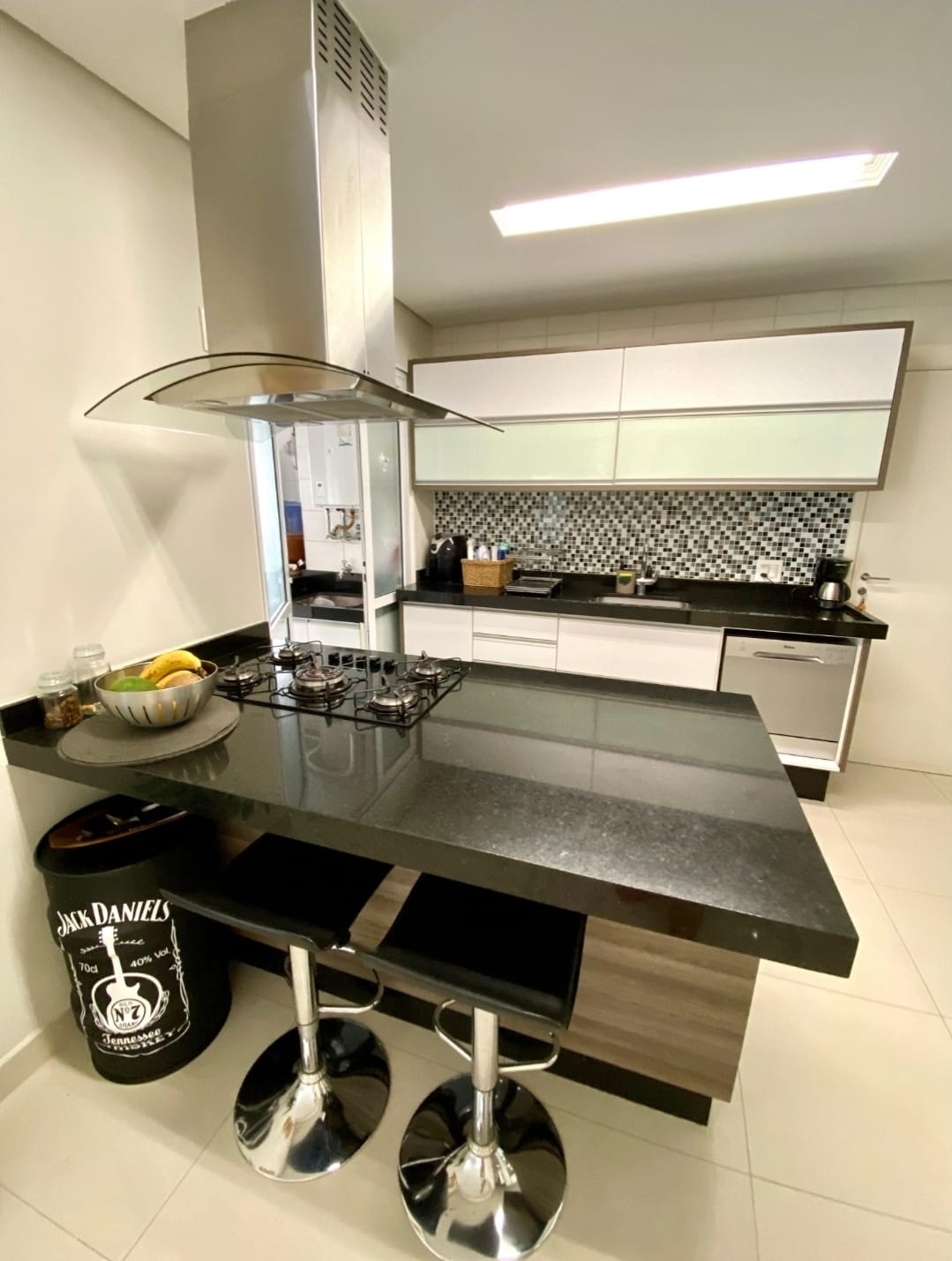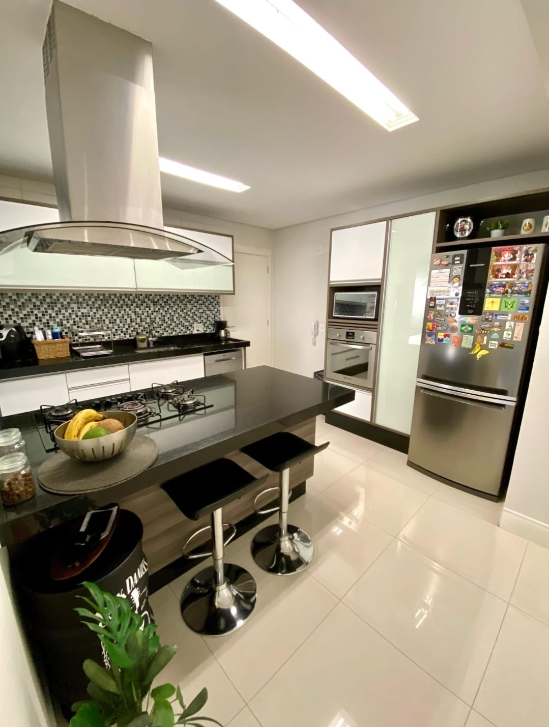 Conta com cozinha planejada com ilha, moderno e funcional, integrada aos ambientes sociais. A sala ampla, proporcionando excelente iluminação natural e ótima circulação.
